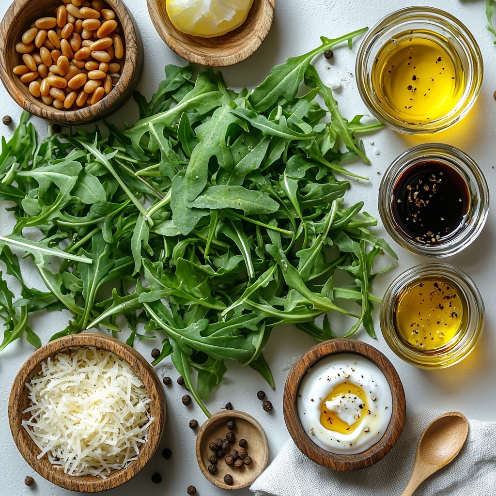 Gathering a handful of fresh and straightforward ingredients is all you need to create this standout dish. Each component plays a vital role: the peppery arugula brings a lively green crunch, the Parmesan adds luxurious creaminess, and the optional pine nuts contribute a toasted nuttiness that rounds everything out perfectly.