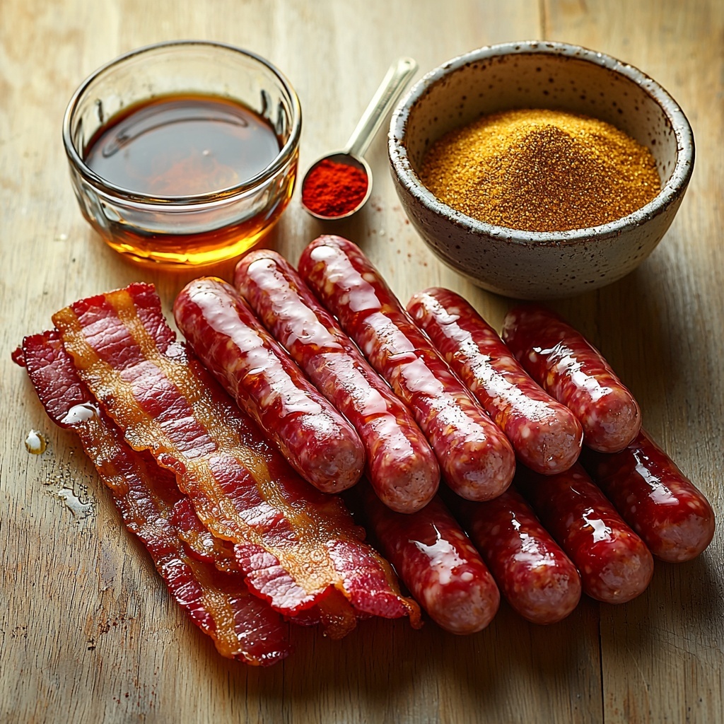 The secret to perfect Bacon Wrapped Smokies with Maple Syrup Recipe lies in a handful of straightforward ingredients that each play a delicious role. From the smoky, crispy bacon to the sweet and spicy glaze, each component brings texture, rich flavor, or just the right touch of heat.