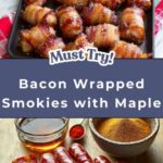 Irresistible Bacon Wrapped Smokies with Maple Syrup is a delicious appetizer featuring mini sausages wrapped in thick-cut bacon, baked to perfection, and coated in a sweet and spicy maple syrup glaze. Perfect for parties or game day, this recipe combines savory bacon, smoky sausages, and a hint of cayenne for a flavorful treat everyone will love.