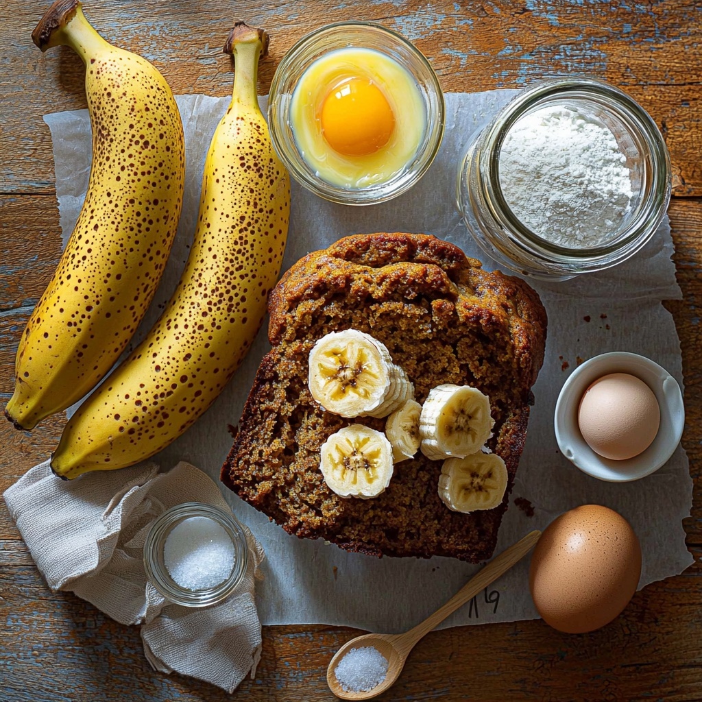 • 3 ripe bananas, mashed: The star of the show, these lend natural sweetness and keep the bread moist and tender.