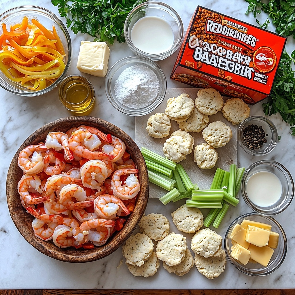 Gathering the right ingredients is key to bringing out the rich flavors and textures in this Biscuit Seafood Pot Pie Recipe. Each component plays a crucial role, from the fresh seafood for that tender bite to the cheddar bay biscuit mix that adds cheesy, herby warmth on top.