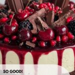 - Assemble the cheesecake: Carefully remove the fully set cheesecake from the springform tin and place it on a serving plate. Spread the cooled cherry topping evenly over the surface of the cheesecake. Pipe or spread the whipped cream decoratively around the edges. Finally, garnish with dark chocolate shavings or curls to enhance visual appeal and add texture.