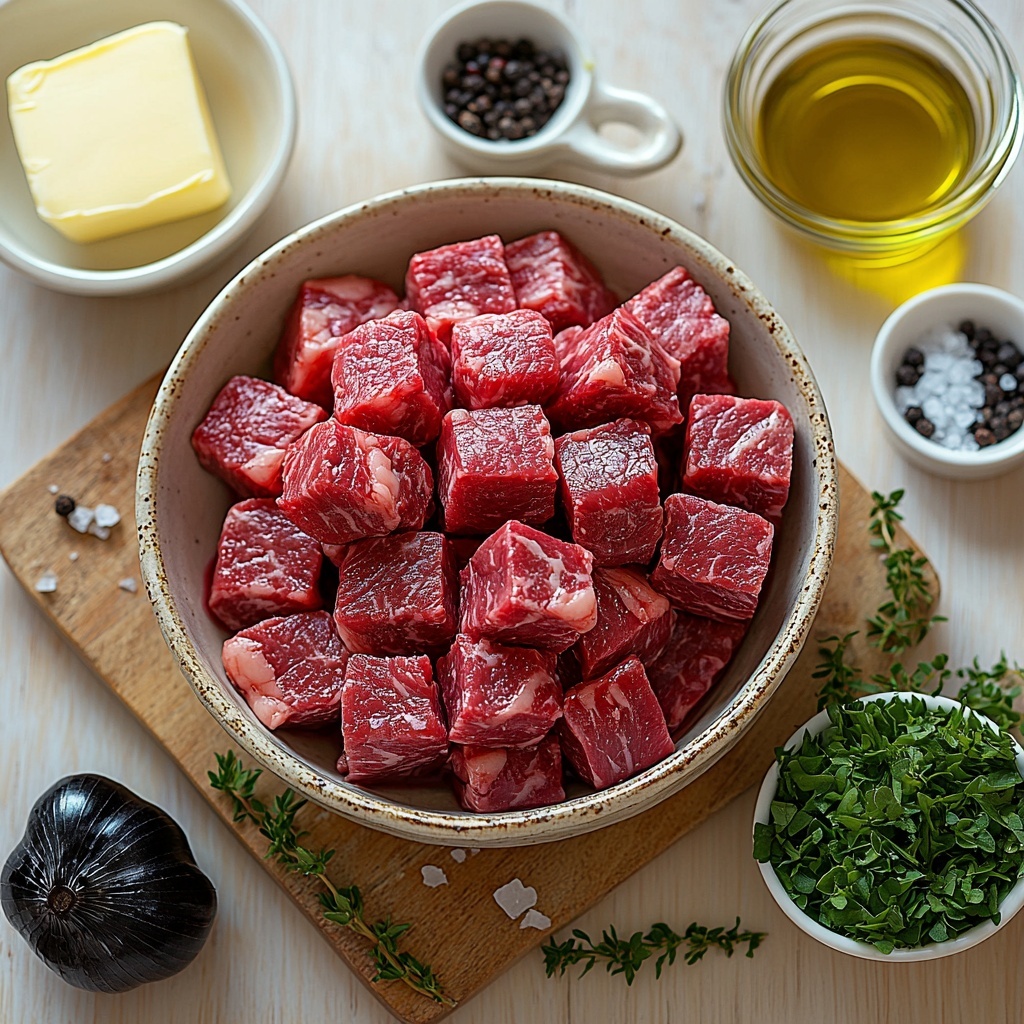 The beauty of this recipe lies in its simplicity. Every ingredient plays a crucial role, from the quality of the steak cubes to the unique taste of black garlic and the freshness of thyme. Together, they create a harmony of flavors that’s irresistible.