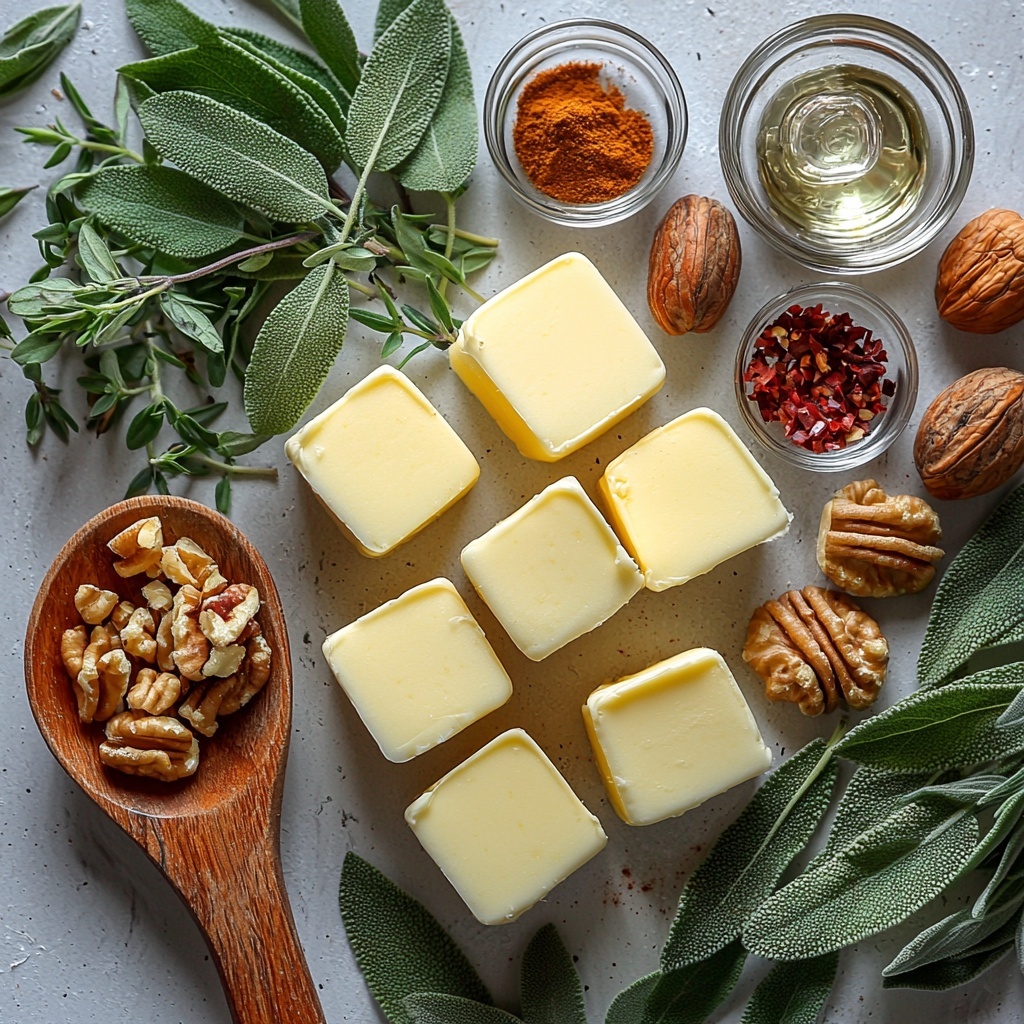 These ingredients are refreshingly straightforward yet essential for creating that perfect balance of richness, freshness, and texture in the brown butter. Each component serves a specific role, whether it’s adding a herbaceous note, a crunchy surprise, or an optional spice warmth that can be tailored to your mood.