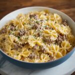 This flavorful Cajun Alfredo Bowtie Pasta combines perfectly cooked bowtie pasta with a creamy, spicy Alfredo sauce and spiced ground beef, creating a comforting and satisfying meal. The sauce is infused with garlic, bell peppers, and classic Cajun spices, offering a delicious twist on traditional Alfredo pasta that’s perfect for weeknight dinners or entertaining guests.