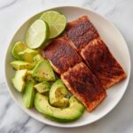 This dish pairs wonderfully with light, fresh sides. Think fluffy quinoa tossed with herbs, a crisp green salad, or even some roasted sweet potatoes to complement the smoky heat of the salmon. The fresh avocado salsa and salmon shine brightest when served with simple, clean flavors.