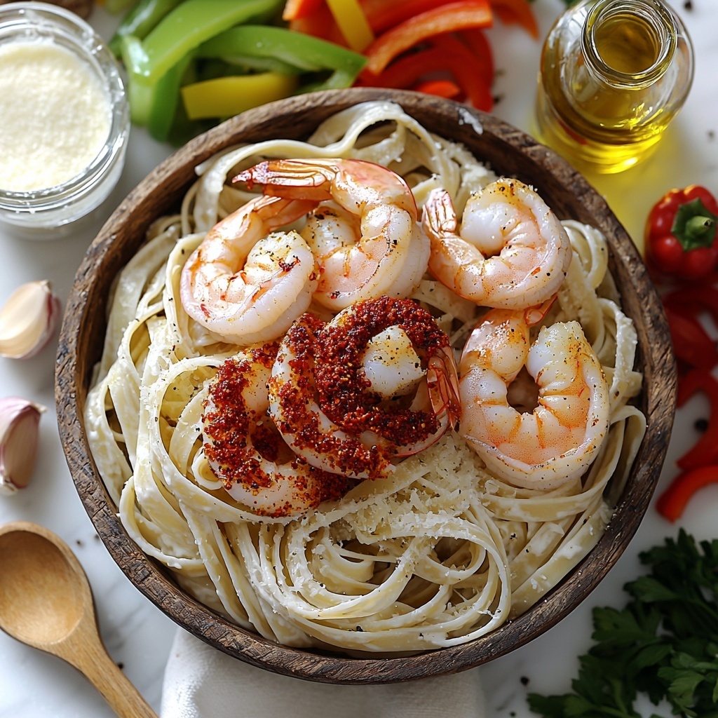 A flavorful and creamy Cajun shrimp pasta featuring perfectly seasoned shrimp, tender sautéed bell peppers and onions, all combined with linguine in a rich Cajun-spiced cream sauce. Ready in just 30 minutes, this dish offers a quick and satisfying meal with a delightful balance of spice and creaminess.