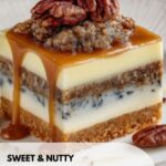 Because this dessert is best enjoyed chilled, skip reheating. Instead, allow frozen pieces to thaw naturally in the refrigerator to maintain their creamy layers and crisp pecan topping.