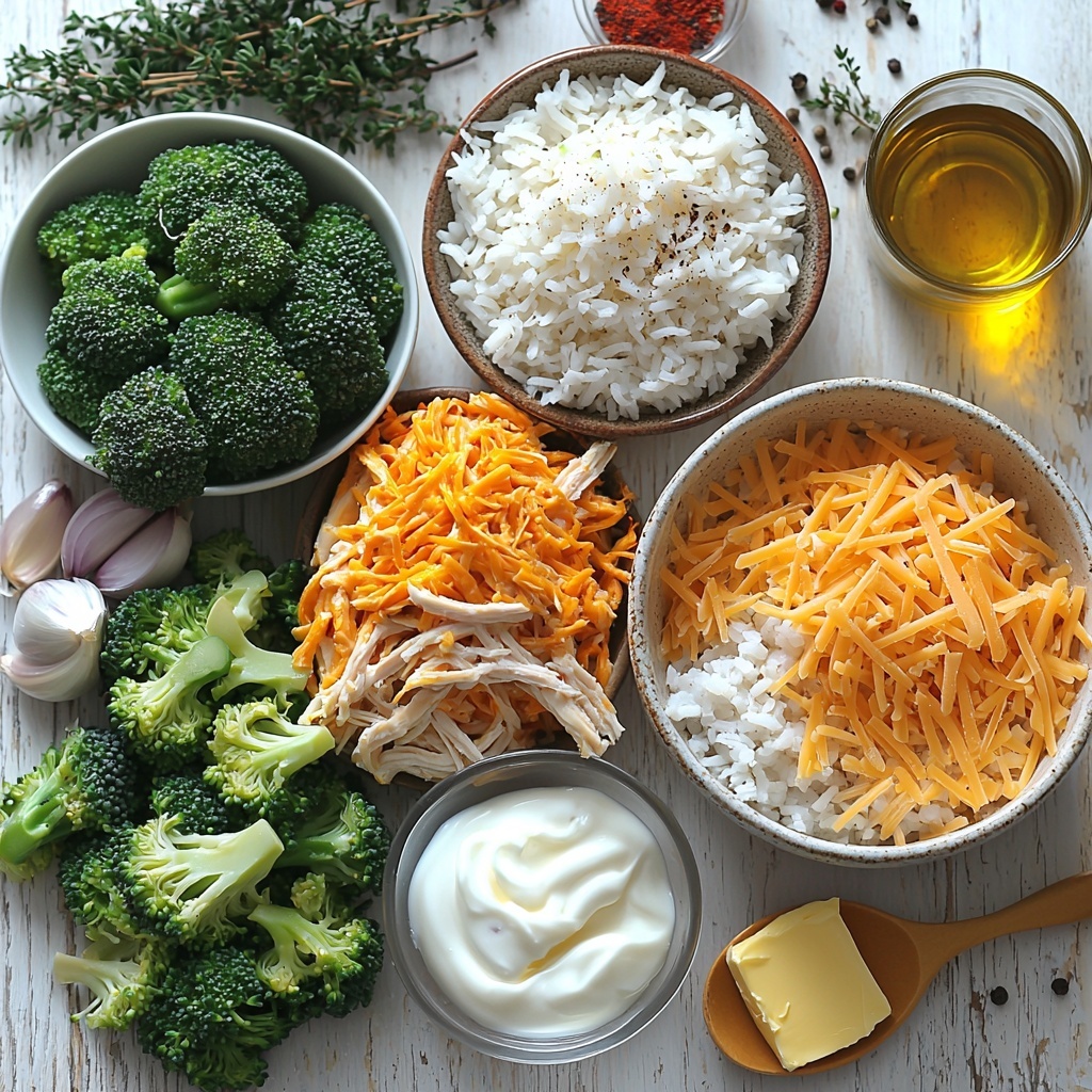 This recipe uses simple but essential ingredients, each playing a vital role in creating that irresistible taste and texture. From juicy chicken to fresh broccoli and the perfect blend of cheeses, every component adds something special to the dish.