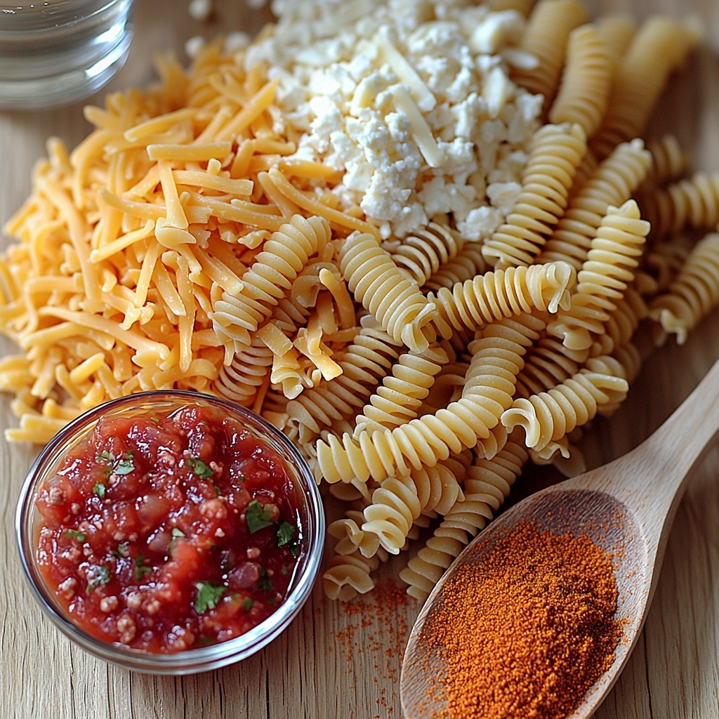 Gathering these simple but essential ingredients is the first step to whipping up this crowd-pleaser. Each component brings its unique flair—from the tender pasta to the zesty taco seasoning to the melty cheese that pulls everything together in one delicious bite.