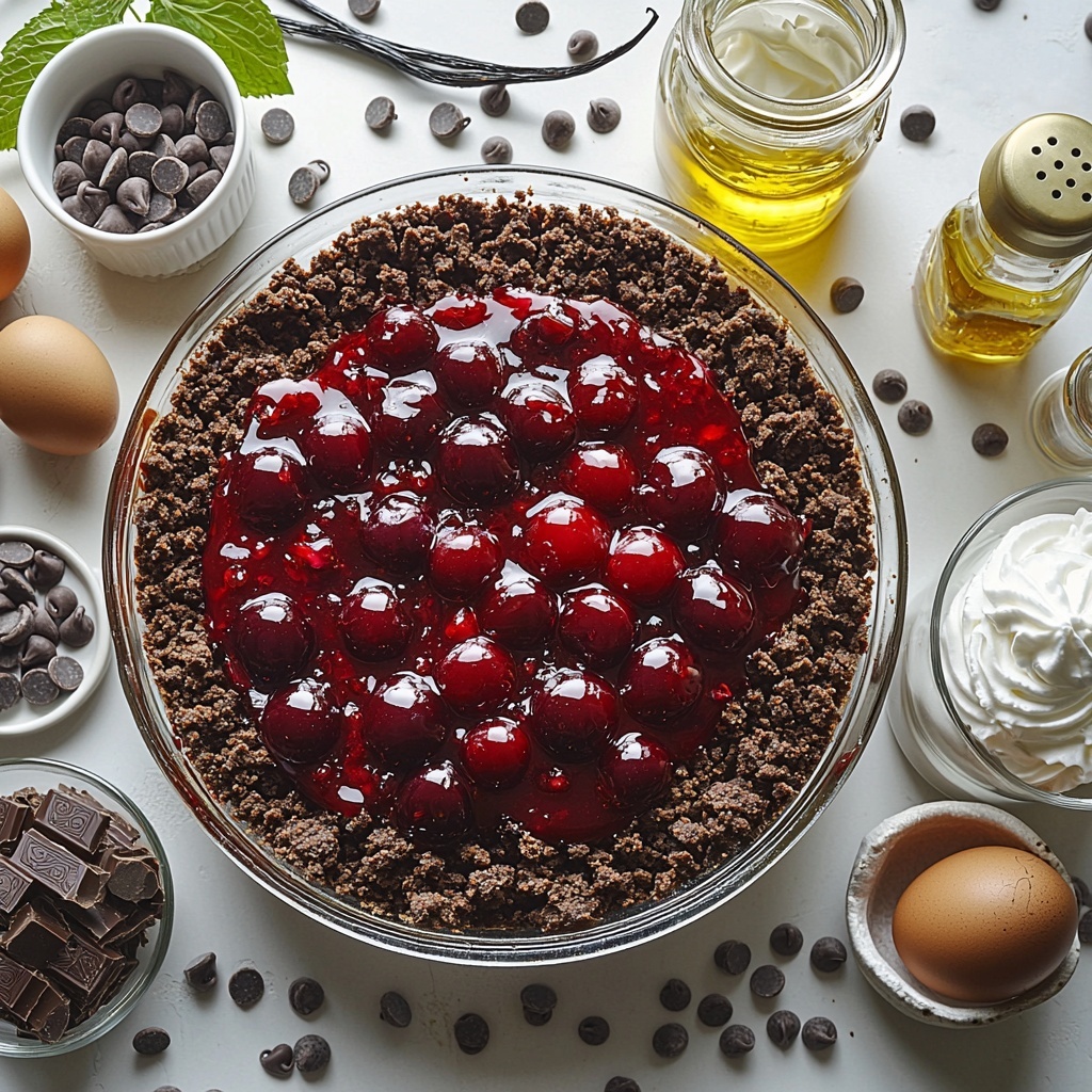 Gathering these straightforward ingredients is the first step to creating your own Cherry Chocolate Chip Trifle Recipe masterpiece. Each component plays a vital role, from the rich chocolate cake base to the bright cherry filling and creamy whipped topping, making every bite a balanced experience.