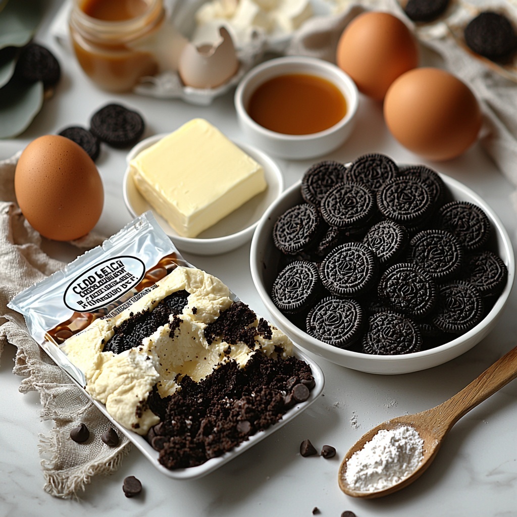 The magic of this Chocolate Chip Cookie Oreo Cheesecake Bars Recipe lies in its straightforward, pantry-friendly ingredients that come together beautifully for a decadent dessert. Each component plays a vital role, from the cookie mix that forms a buttery base to the cream cheese bringing richness and silkiness to the cheesecake layer.
