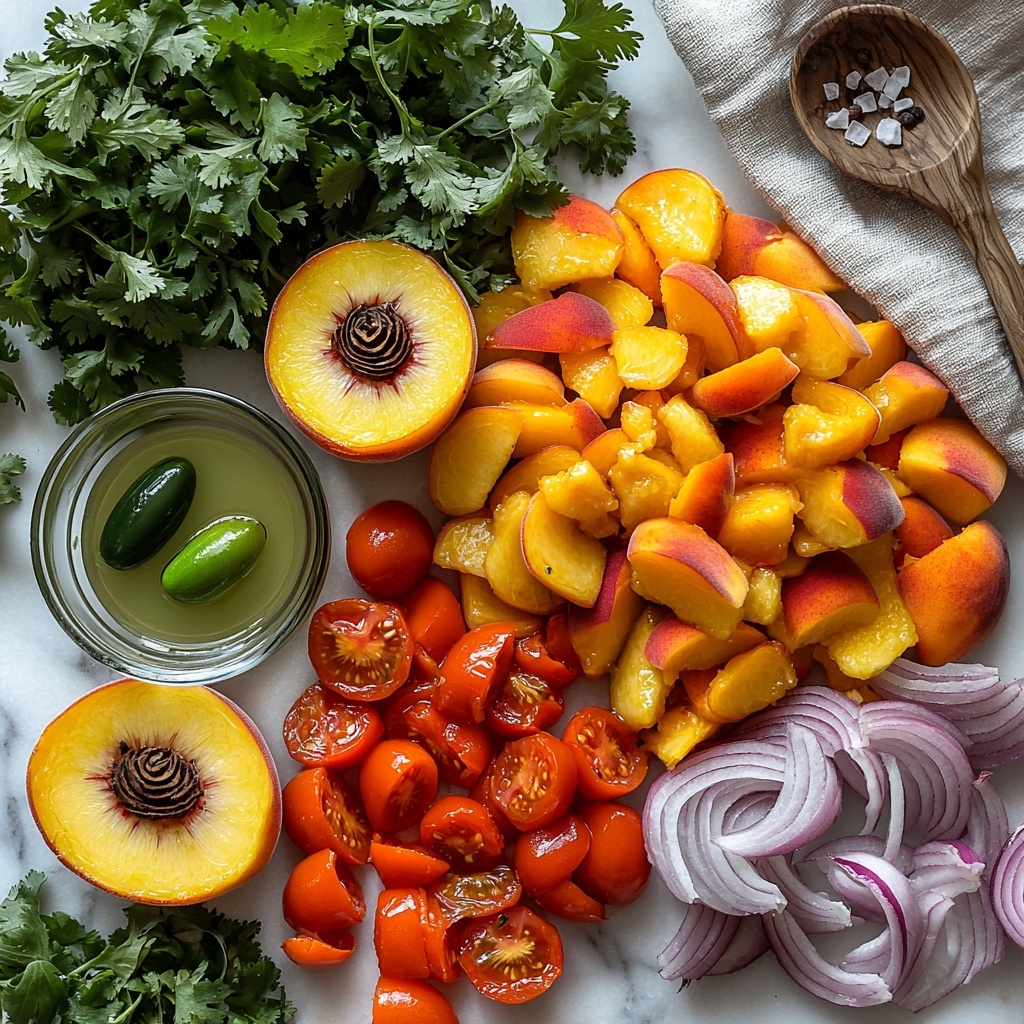 Start by dicing your fresh peaches and roma tomatoes into chunky pieces that will give your salsa that robust texture. Add in the finely diced jalapeño, onion, and a generous handful of chopped cilantro to your mixing bowl. Gently stir everything together so that the colorful ingredients begin to mingle but still keep their shape.