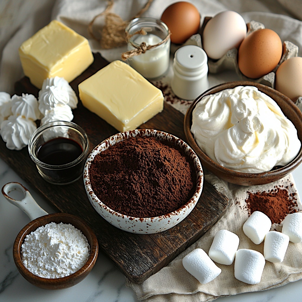 For this Cozy Hot Chocolate Cheesecake Bars Recipe, the ingredients are simple but essential, each playing a unique role in building layers of flavor and texture that’ll make you swoon. From the rich cocoa powder to the silky cream cheese and the sweet, fluffy meringue, everything comes together like a little magic.