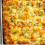 - Assemble the casserole: Transfer the mixture into a baking dish, spreading it out evenly. Sprinkle generously with aged cheddar cheese on top according to your preference for a rich, cheesy crust.