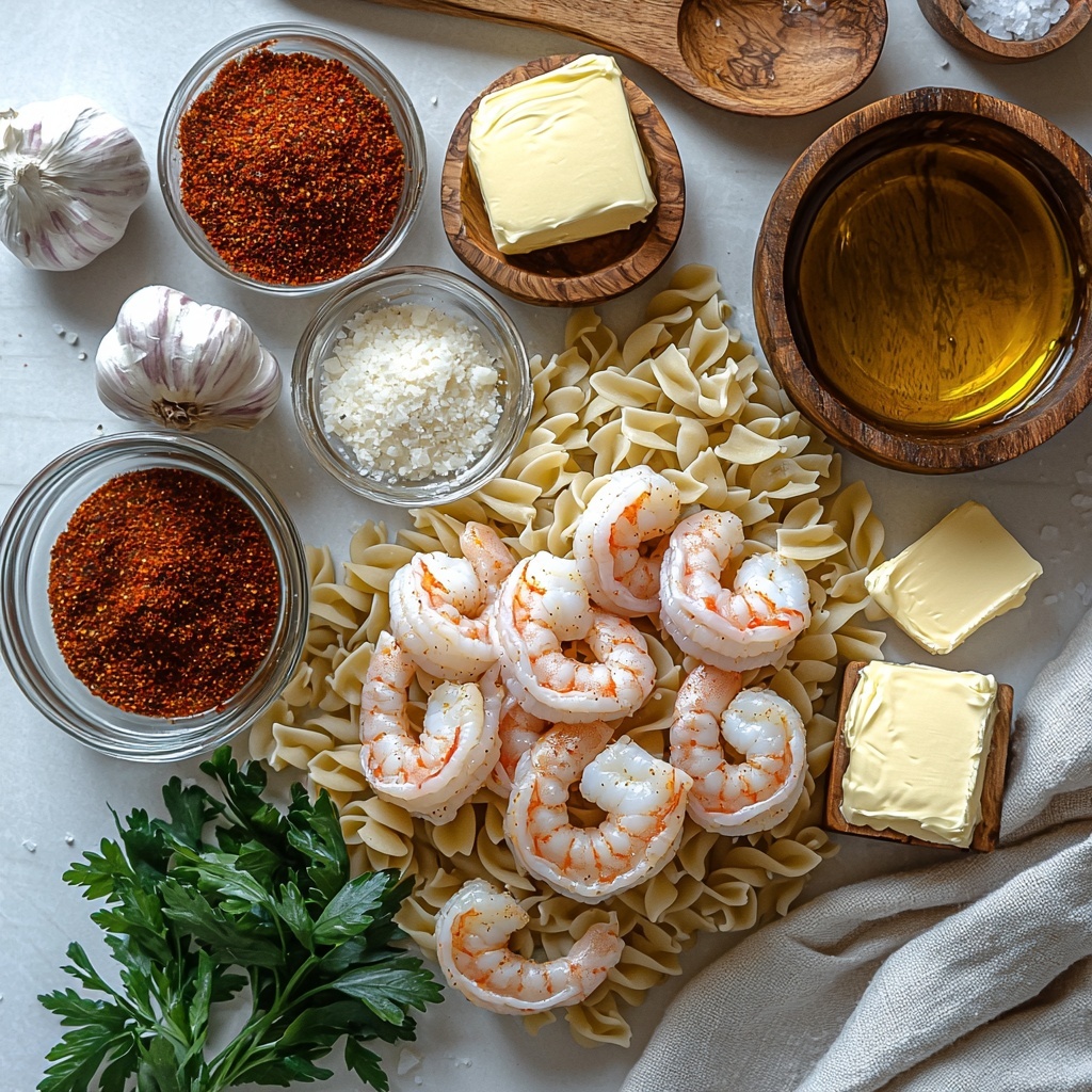 This Creamy Cajun Shrimp Pasta Recipe relies on simple yet indispensable ingredients, each playing a unique role in crafting the full flavor and texture of the dish. From the spice-packed Cajun seasoning to the creamy Parmesan-enriched sauce, these ingredients come together in perfect balance.