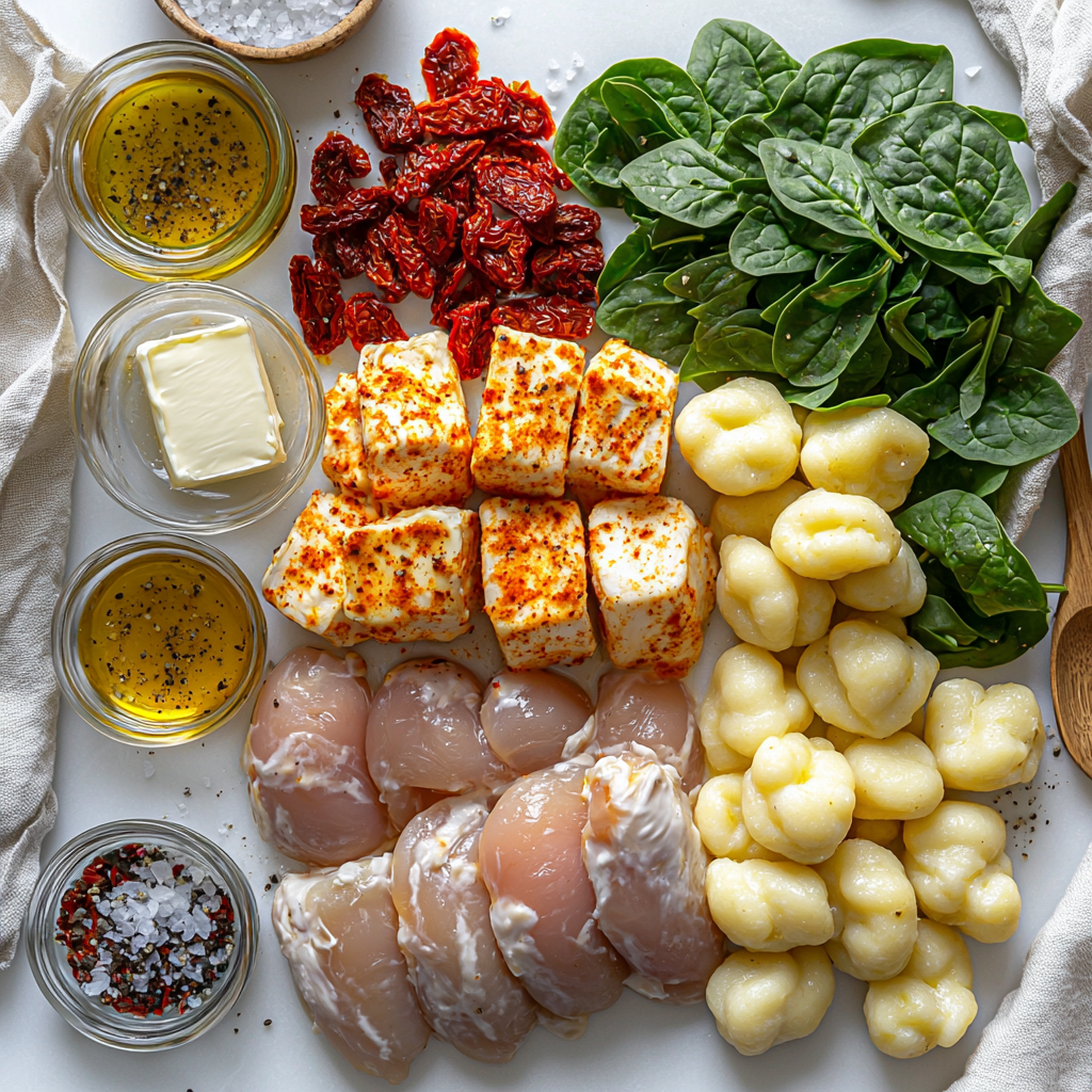 This Creamy Chicken and Gnocchi Skillet Recipe relies on a handful of straightforward ingredients that each play a starring role in creating the perfect balance of flavors and textures. Some deliver richness, others add freshness, and together they turn a quick skillet meal into something truly special.