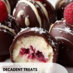 These Decadent Raspberry Cheesecake Truffles are creamy, fruity bite-sized treats featuring a luscious cream cheese and raspberry filling coated in rich semi-sweet chocolate. Perfect for special occasions or indulgent snacking, they combine the tangy sweetness of fresh raspberries with the smooth texture of whipped topping and graham cracker crumbs, all covered in a glossy chocolate shell.