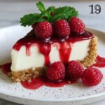 Fresh raspberries and peppermint leaves are simple yet stunning garnishes that instantly elevate your cheesecake’s appearance and flavor. Their vibrant colors create a pretty contrast, while the mint adds a refreshing aroma and a subtle hint of coolness that pairs perfectly with the tart berries.