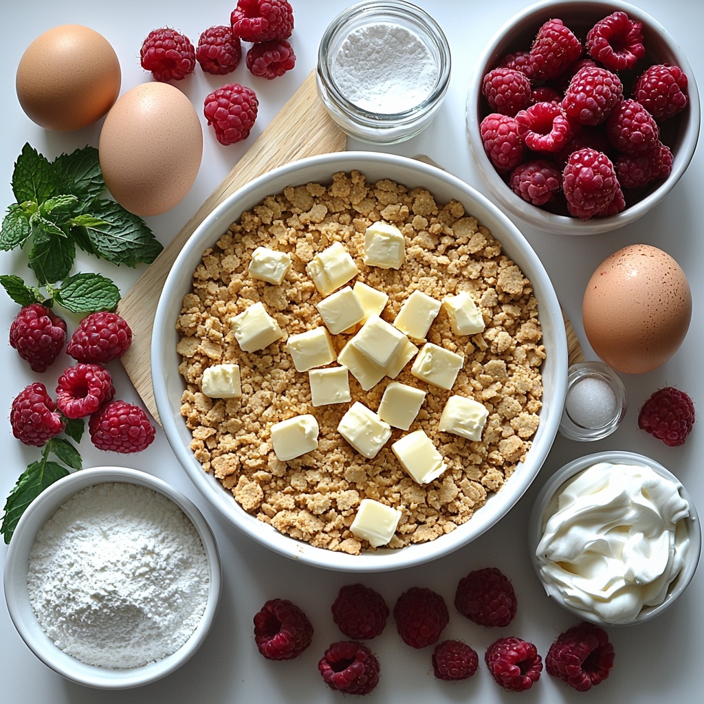 These ingredients are simple but essential—they work together to create a perfect balance of flavor, texture, and freshness in this Dreamy Raspberry Cheesecake Recipe. From the buttery crust to the silky cheesecake filling infused with juicy raspberries, each element plays its own delicious role.
