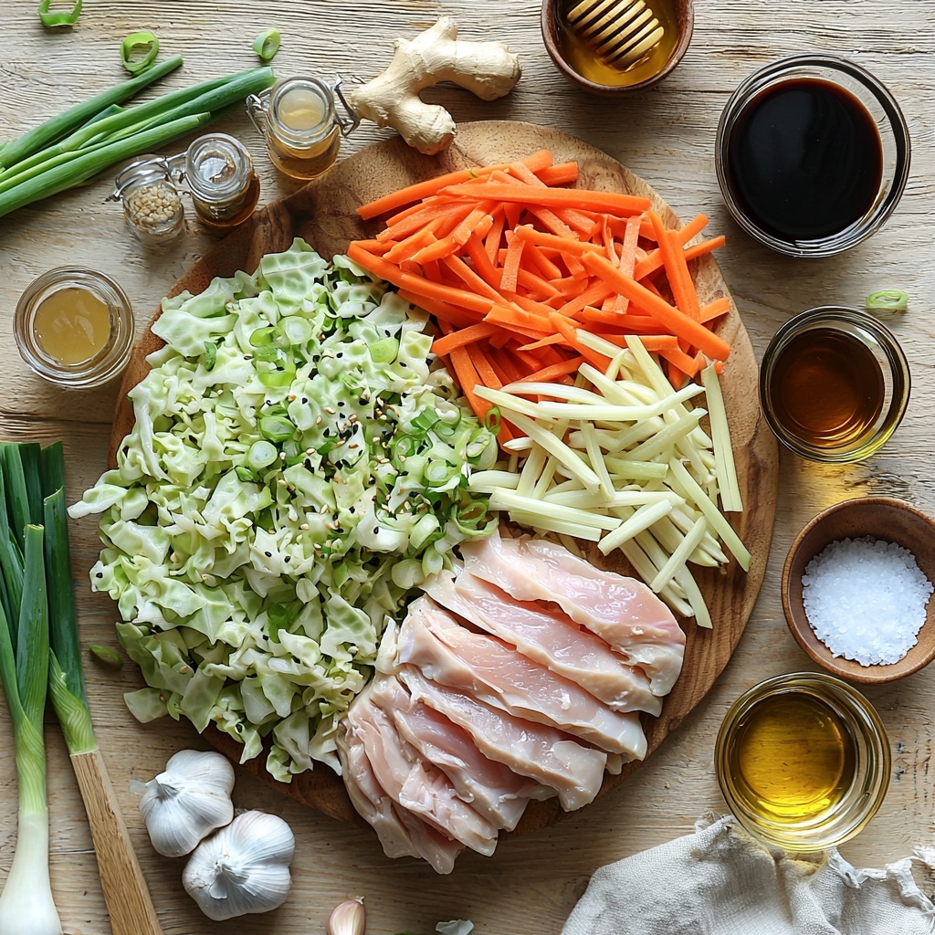 These ingredients are straightforward but essential to build distinct layers of taste, texture, and color in your stir-fry. Each component plays a specific role, from the crisp freshness of cabbage and carrots to the umami-packed soy sauce that ties everything together beautifully.