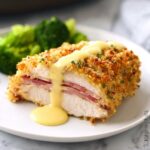 This Easy Chicken Cordon Bleu recipe features tender chicken breasts layered with savory honey ham and Swiss cheese, baked to golden perfection with a crispy breadcrumb topping. Served with a creamy Parmesan-Dijon sauce, it’s a delightful and comforting dish perfect for weeknight dinners or special occasions.