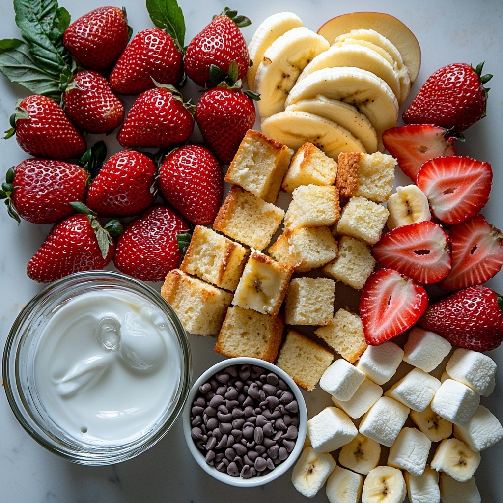 - Fruits for dipping (strawberries, bananas, apples): Fresh and juicy, they offer a vibrant contrast in texture and taste.