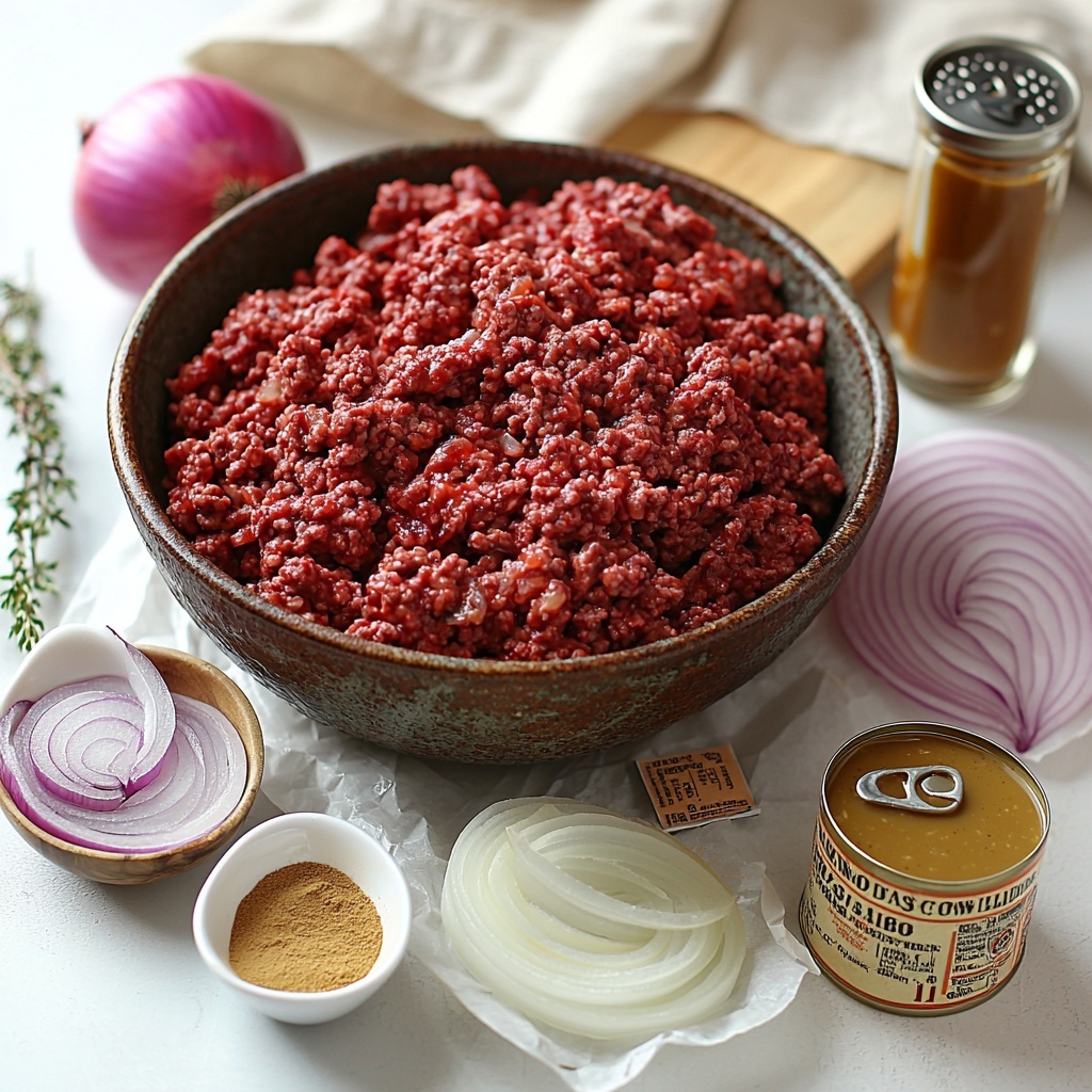 These ingredients are straightforward but essential, each playing a vital role in creating the perfect balance of taste, texture, and color in your Easy Hamburger Steaks with Onion Gravy Recipe. From the aromatic spices in the meat to the velvety onion gravy, every component works harmoniously.