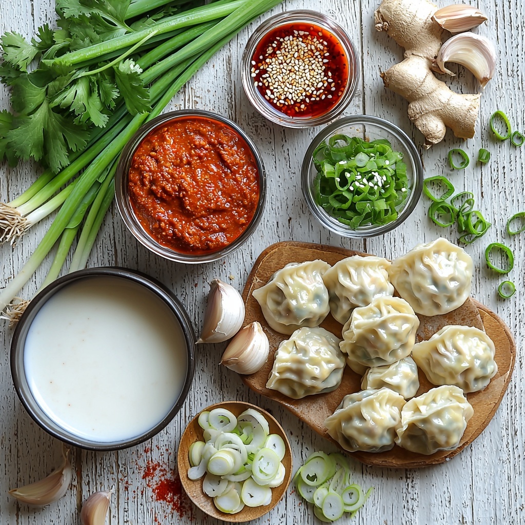 Getting started with this Easy One-Pan Dumplings Recipe means gathering a handful of simple, vibrant ingredients that each play an important role. From the creamy coconut milk that forms the base of the sauce to the aromatic garlic and spicy curry paste, every item adds a layer of flavor or texture that makes this dish irresistible.