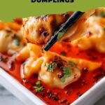 This Easy One-Pan Dumplings recipe is a delightful fusion dish that combines tender dumplings baked in a flavorful red curry coconut milk sauce. With simple ingredients and minimal prep, this recipe yields a comforting, aromatic, and visually appealing meal perfect for a quick weeknight dinner. Topped with fresh green onions, chili oil crunch, cilantro, and sesame seeds, it offers layers of taste and texture in every bite.