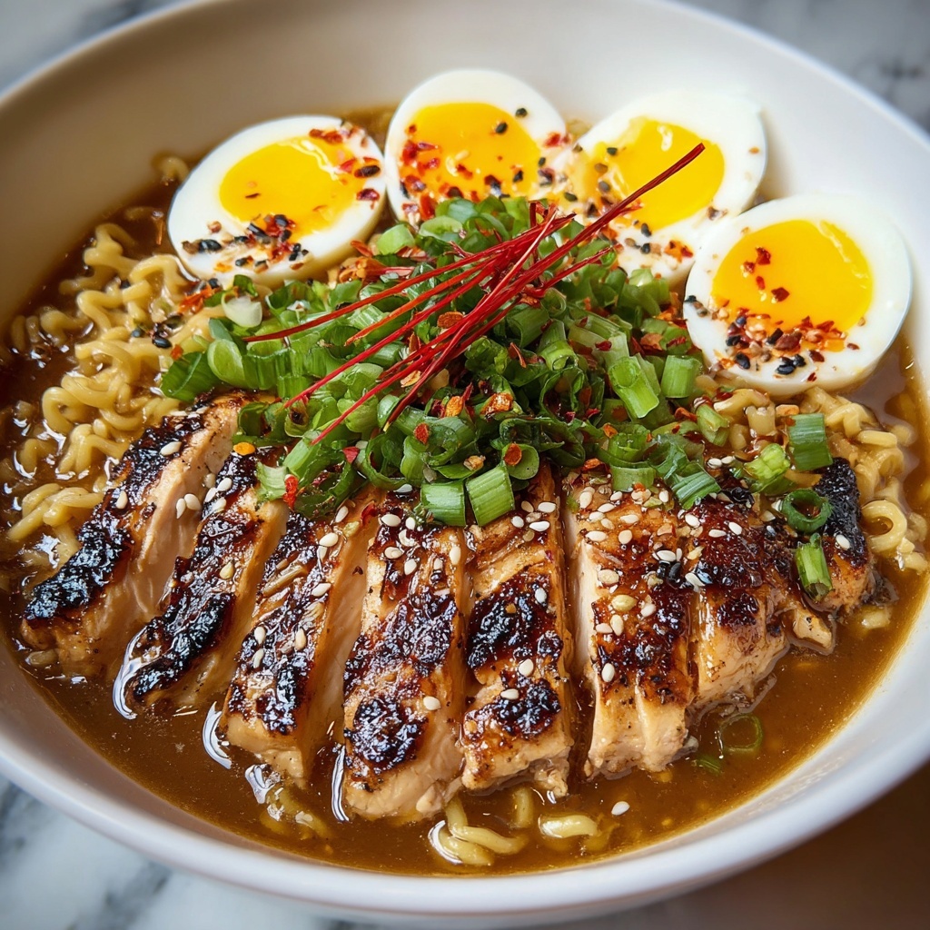 This ramen shines as a hearty main course, but pairing it with crunchy pickled vegetables or a crisp Asian-inspired salad can offer a refreshing counterbalance to the soup’s heat and creaminess. Light steamed greens or edamame tossed with sea salt are also fantastic, easy sides that keep the meal satisfying without overshadowing the bold flavors of the broth and chicken.