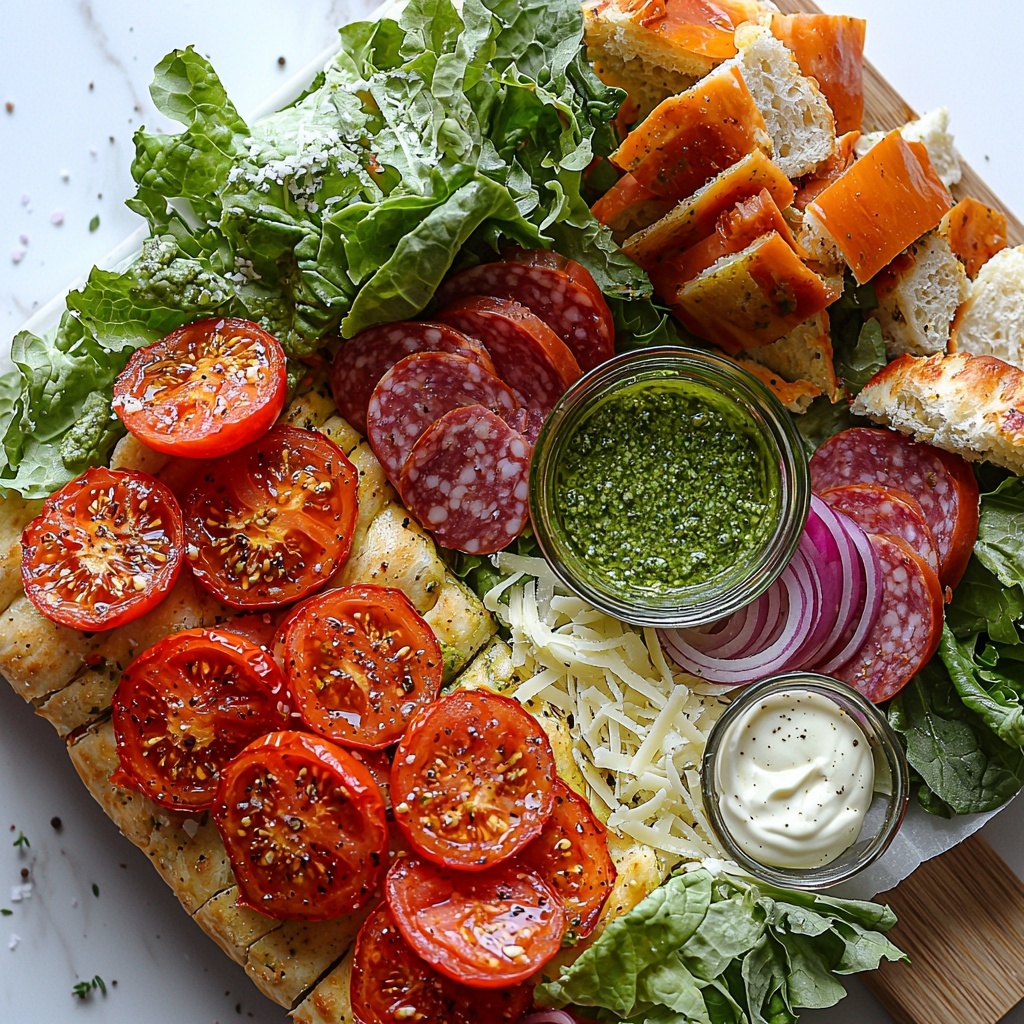 Yes! You can swap out the cured meats for roasted vegetables like eggplant, zucchini, or grilled peppers and add marinated artichokes or olives for a briny punch. Keep the pesto and salad as is for a bright, satisfying vegetarian option.