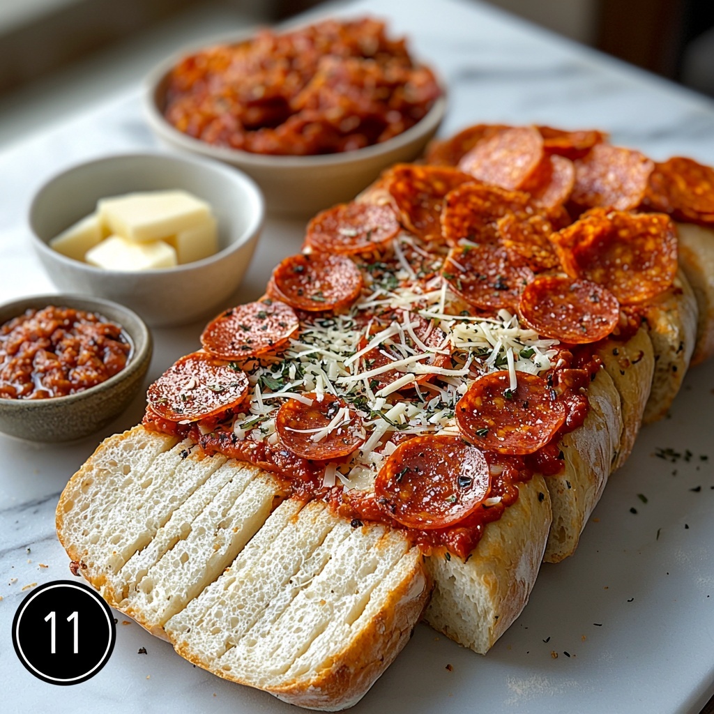 The beauty of this French Bread Pizza Recipe lies in its straightforward ingredients—each one playing a vital role in creating that iconic pizza flavor and satisfying texture. From the rich butter and garlic combo that crisps the bread to the medley of cheeses that gives the perfect gooey finish, every ingredient contributes to pure pizza bliss.