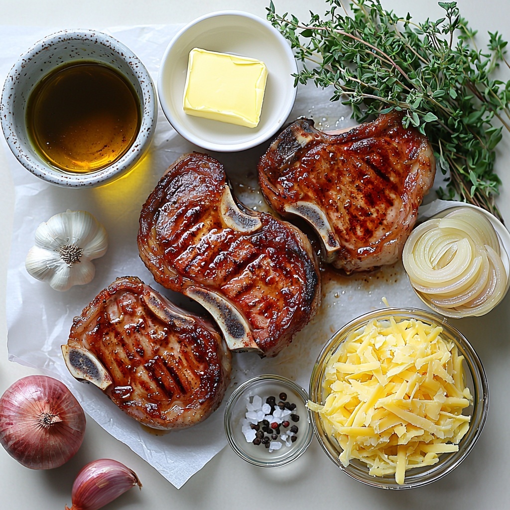 This recipe keeps things simple with a handful of essential ingredients that build layers of flavor, texture, and color. Each component—from silky caramelized onions to savory beef broth and nutty Gruyère cheese—plays a crucial role in creating that iconic French onion taste paired perfectly with pork chops.