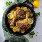 This Roasted Chicken Leg Quarters recipe offers a deliciously crispy-skinned chicken paired with golden, tender Yukon Gold potatoes and shallots. Seasoned with fresh thyme, garlic, and a bright lemon finish, this skillet-to-oven method delivers a comforting yet elegant meal perfect for an easy weeknight dinner or casual dinner party.