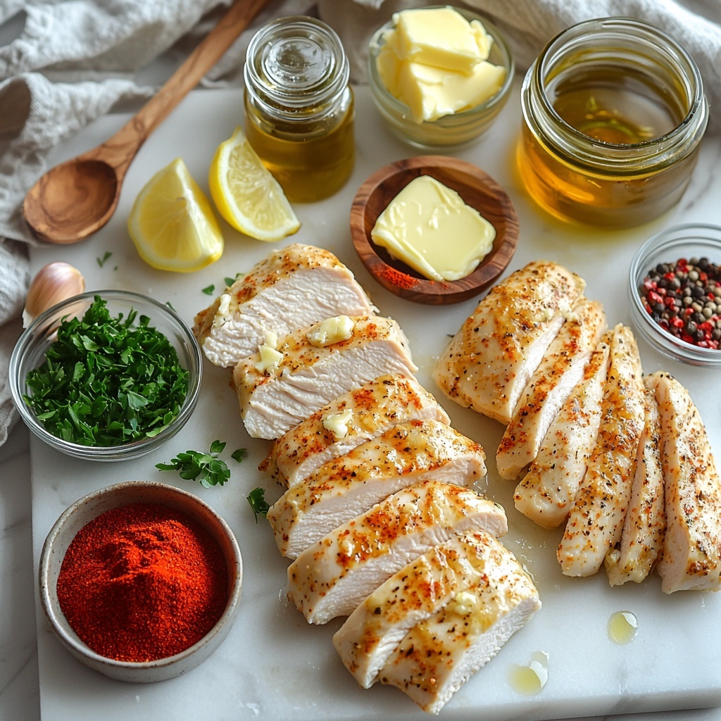 This Garlic Parmesan Chicken Bake – Crispy, Creamy Comfort Recipe uses a handful of straightforward yet powerful ingredients. Each plays a crucial role, from the lemon juice adding brightness, to the paprika lending warmth and color, ensuring the dish is as flavorful as it is visually inviting.