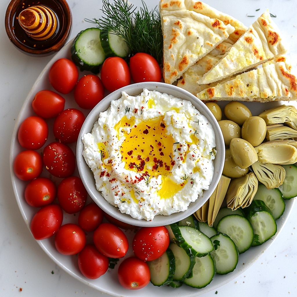 How to Make Greek Mezze Board with Whipped Feta, Hot Honey & Pita – Easy Mediterranean Appetizer Recipe