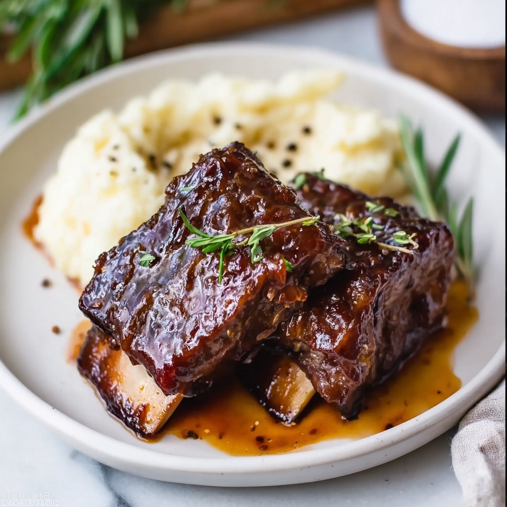 - Serve: Remove ribs from the oven and serve them hot over creamy mashed potatoes, spooning the rich braising liquid and vegetables on top.