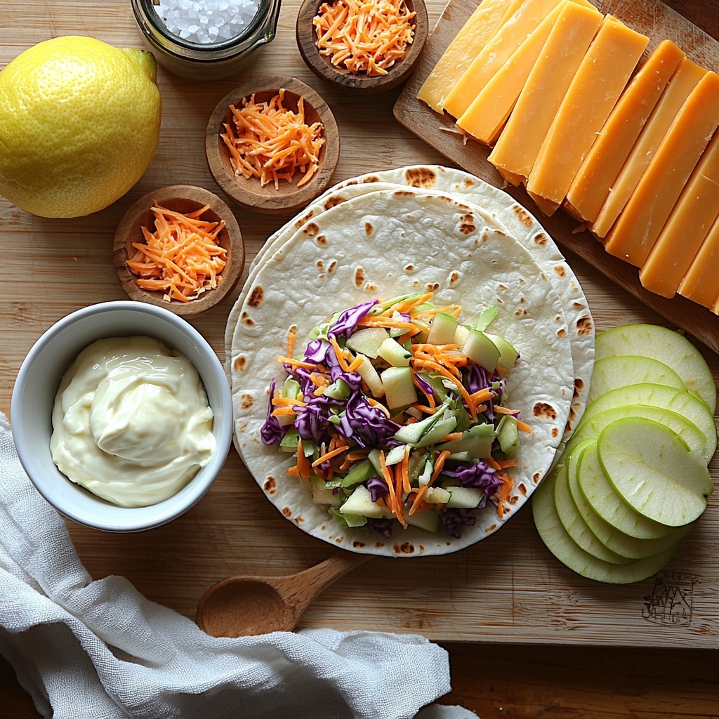 - Assemble the wraps: Evenly divide the prepared coleslaw mixture onto each tortilla. Top the coleslaw with half-slices of sharp Cheddar cheese, followed by generous amounts of thick-sliced deli turkey based on your preference.