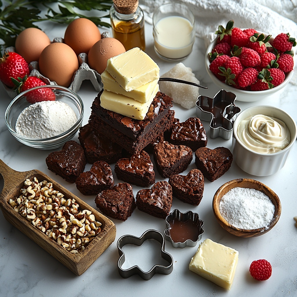 Gathering the right ingredients is the first step to creating these irresistible heart-shaped brownies. Each component plays a crucial role in delivering that perfect fudgy texture and deep chocolate flavor that make this Heart-Shaped Brownies Recipe so unforgettable.