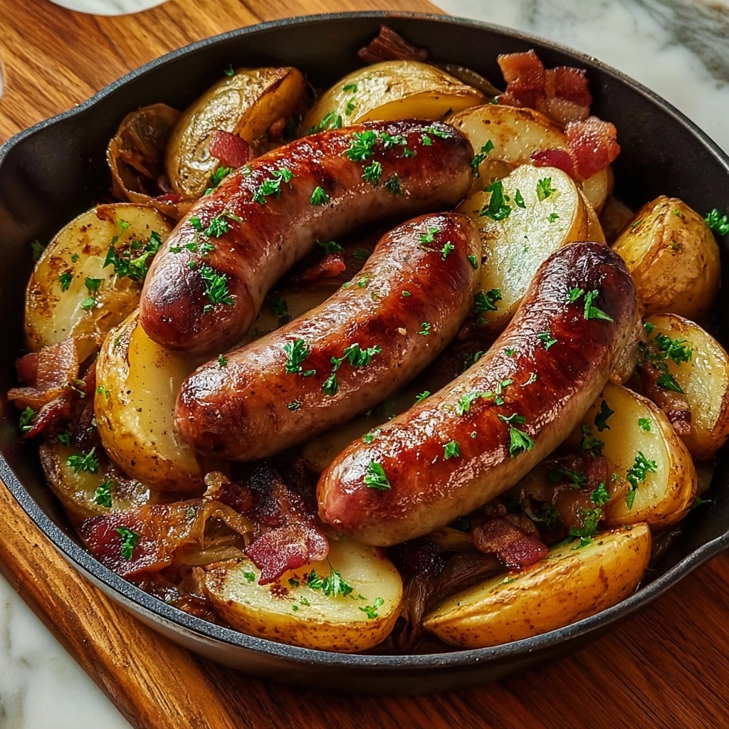 Hearty Dublin Coddle is a traditional Irish stew featuring tender beef sausages, soft onions, and potatoes simmered slowly in a flavorful broth. This comforting dish is perfect for cozy family dinners and embodies classic Irish home cooking.