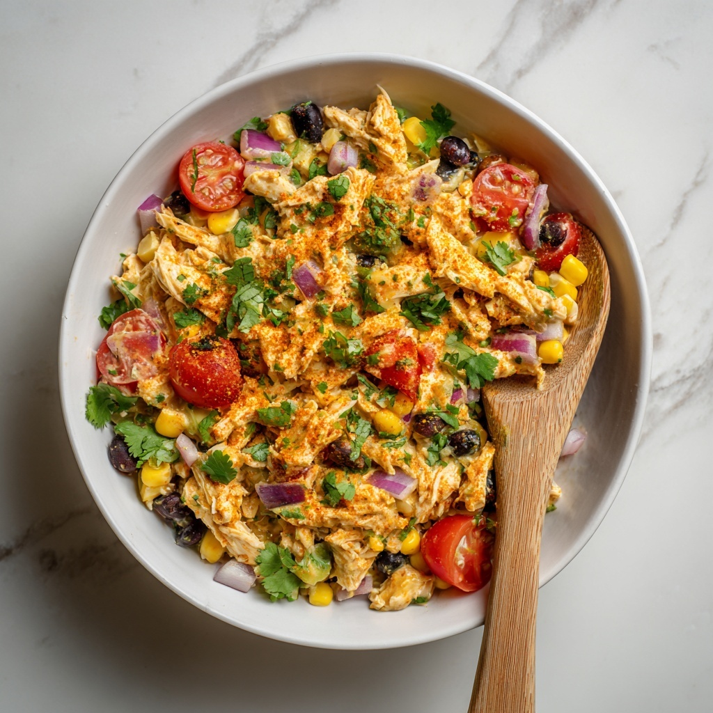 Start by creating the flavorful dressing that will unify this salad’s components. Mix the mayo or Greek yogurt, fresh lime juice, taco seasoning, honey, salt, and pepper thoroughly in a small bowl until smooth. This dressing is tangy, slightly sweet, and packed with spice, setting the delicious tone for the entire dish.