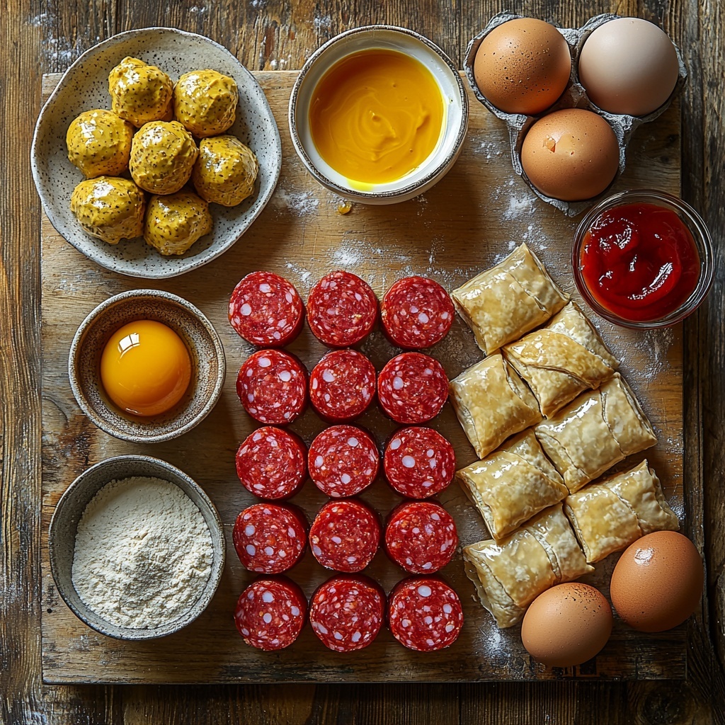 These ingredients are wonderfully simple yet essential for nailing the perfect texture and flavor of your Homemade Pigs in a Blanket Recipe. Each item plays a special role, whether it’s creating that golden, flaky crust or delivering the savory punch you crave.