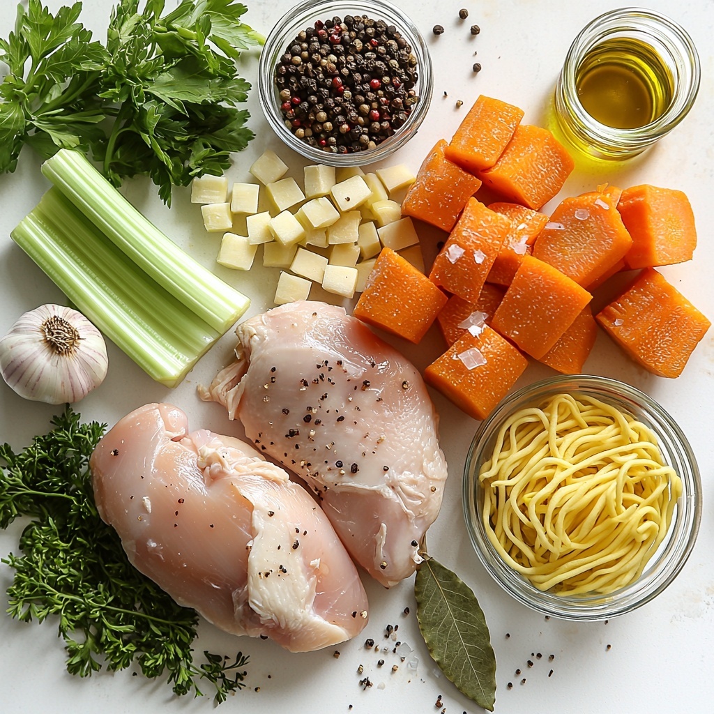 - 6 ounces egg noodles: Classic soup pasta that soaks up the flavorful broth beautifully.