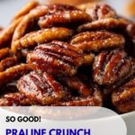 Irresistible Praline Crunch is a delectable sweet treat featuring toasted pecan halves coated in a rich, buttery brown sugar glaze with vanilla, cinnamon, and a touch of sea salt. This simple, quick recipe delivers a crunchy praline snack perfect for snacking, topping desserts, or gifting.
