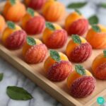 - Add finishing touches: Lightly tint the cookies with red and yellow food coloring if desired to enhance the peach-like appearance. Garnish with fresh mint leaves before serving.