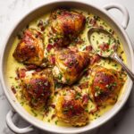 You can freeze leftovers for up to 2 months. To maintain the sauce’s creamy texture, freeze the chicken and sauce together in a freezer-safe container. Thaw overnight in the refrigerator before reheating gently.