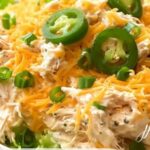 This Jalapeno Popper Chicken Salad combines shredded chicken with creamy cream cheese, tangy mayonnaise, spicy jalapenos, sharp cheddar cheese, and fresh green onions to create a flavorful, easy-to-make salad. Perfect for a quick lunch or a party appetizer, this recipe delivers bold flavors in just 15 minutes.