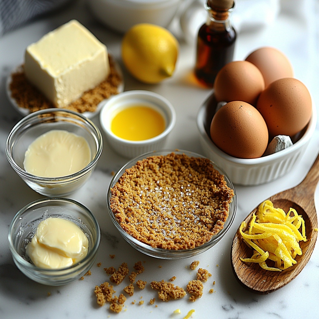 - Pour Filling: Pour the lemon cheesecake filling into the cooled crust evenly.