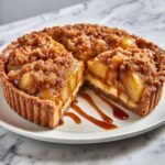 - Apply Topping: Sprinkle the crumbly oat topping evenly over the apple layer on the crust.